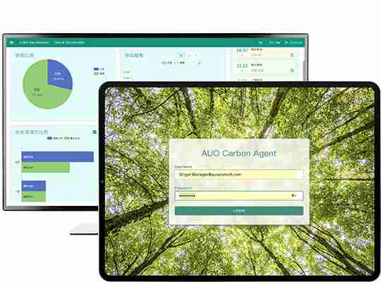 依循 ISO 国际标准建置出符合国际标准的全方位碳管理平台 (AUO Carbon Agent),,,,其中温室气体盘查模组可协助客户将组织、、产品与供应链的碳排放源数据,,,透过系统内建的系数资料库自动计算出碳排量,,,提升整体盘查作业的效率,,,并以此拟定长期减碳策略,,达到低碳转型、、净零碳排的目标。。