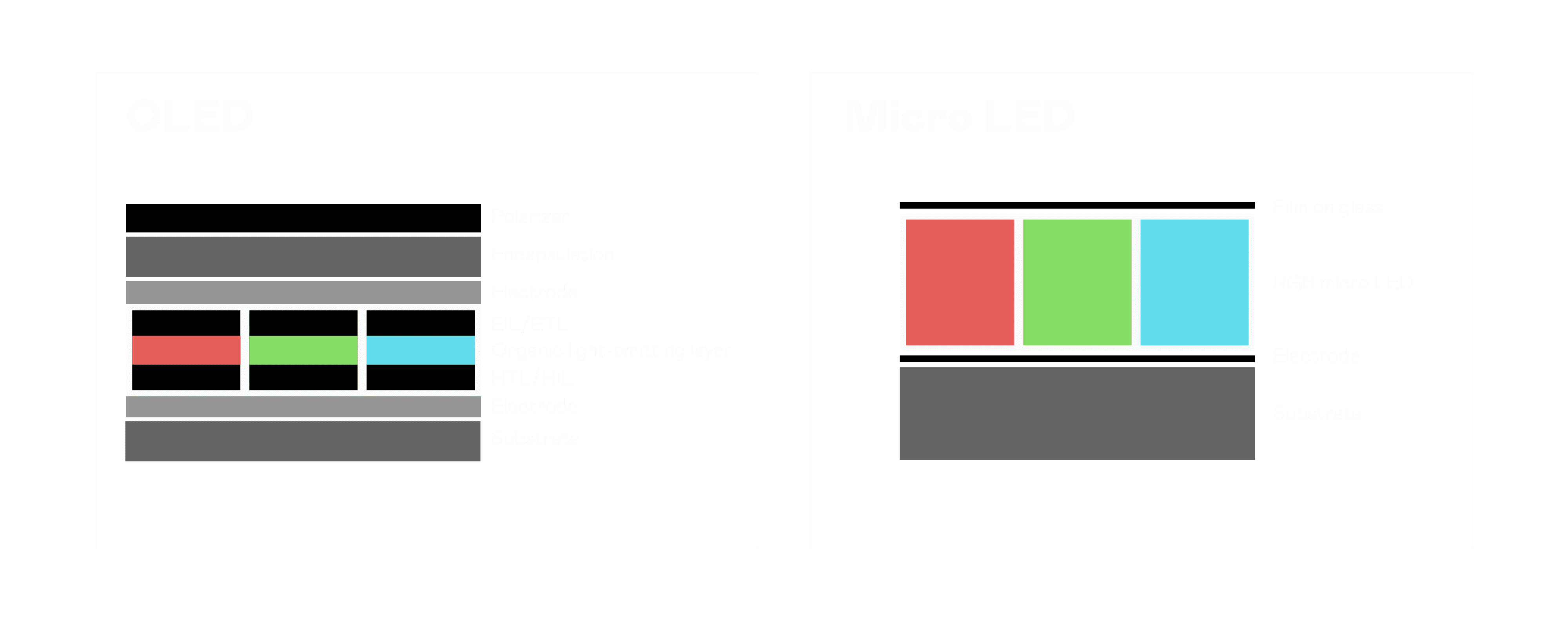 以 LED 做为显示画素,,,,可让 LED 的发光效率发挥到极致,,从而让显示器具备优异的亮度表现,,不论是在户外或室内,,,,均具备出众的显示效果。。。同时,,,与使用有机材料的 OLED 相比,,,LED 具备更稳定、、寿命更长的特性,,,,不仅不会有画面烙印问题,,而且更不容易出现故障、、坏点。。。